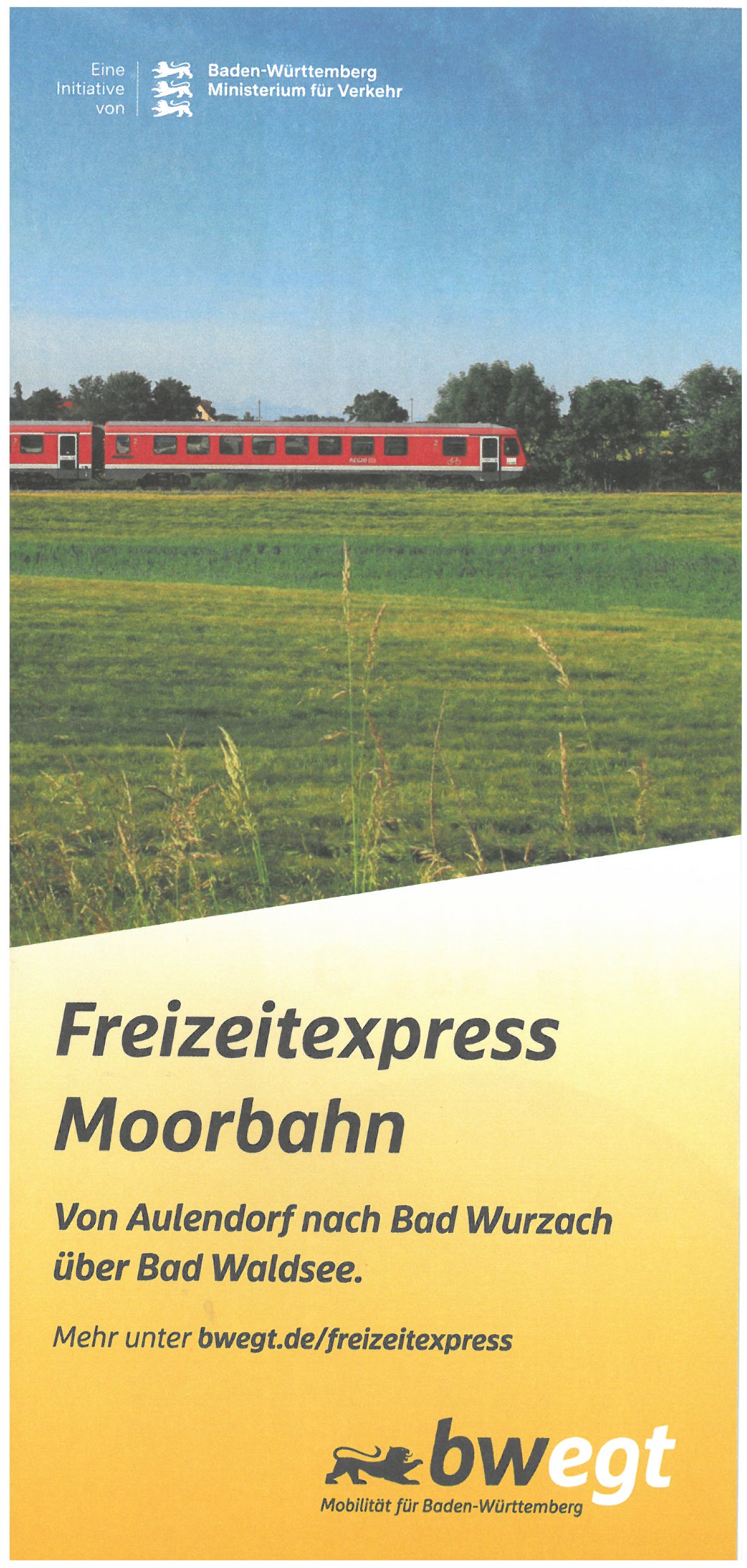 An Sonn- und Feiertagen zwischen Mai und Mitte Oktober fährt die Moorbahn durch das Wurzacher Ried – Mitteleuropas größtes intaktes Hochmoor. Seit dem Ende der Torfgewinnung entwickelt sich das Moor auf natürliche Weise weiter. Die Moorlandschaft bietet geschützte Lebensräume für zahlreiche Vogelarten und Wildtiere. Das alles lässt sich bei einer Fahrt mit der Moorbahn entdecken – oder aktiv auf den Wander- und Radwegen vor Ort erleben.