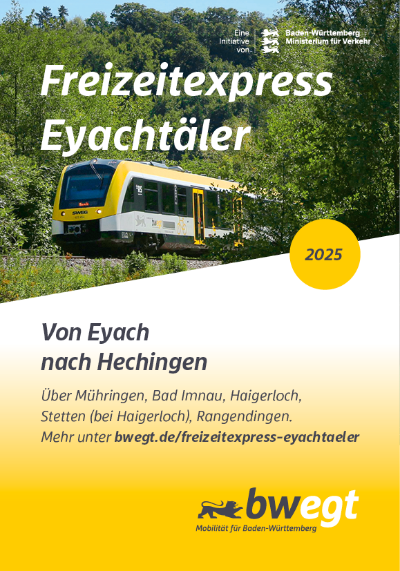 Der Freizeitexpress Eyachtäler fährt durch ein ruhiges Tal abseits großer Ortschaften und stark besuchter Ausflugsziele. Als einziger Personenzug auf dieser Strecke verbindet er direkt das Neckartal mit der Zollernalb – zwei Regionen mit besonderem landschaftlichem und kulturellem Reiz. An der Strecke befinden sich unter anderem das Atomkeller-Museum in Haigerloch, die Burg Hohenzollern und das römische Freilichtmuseum Villa Rustica in Hechingen-Stein.
