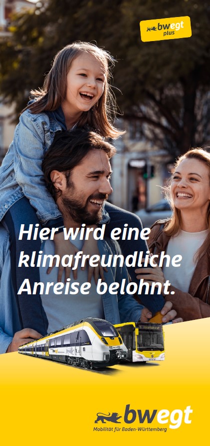 Hier wird die Anreise mit Bus und Bahn belohnt! Wer in Baden-Württemberg mit Bus und Bahn anreist, erhält bei vielen bwegtPlus-Partner tolle Rabatte oder Prämien. Ob Kultur, Natur, Gastronomie, Freizeit oder Shopping: Mit Bus und Bahn kommt man nicht nur klimabewusst zu den schönsten Ausflugszielen, mit dem Bonusprogramm von bwegtPlus profitiert man zusätzlich von über 500 Partnerangeboten in ganz Baden-Württemberg und genießt einen exklusiven Vorteil.